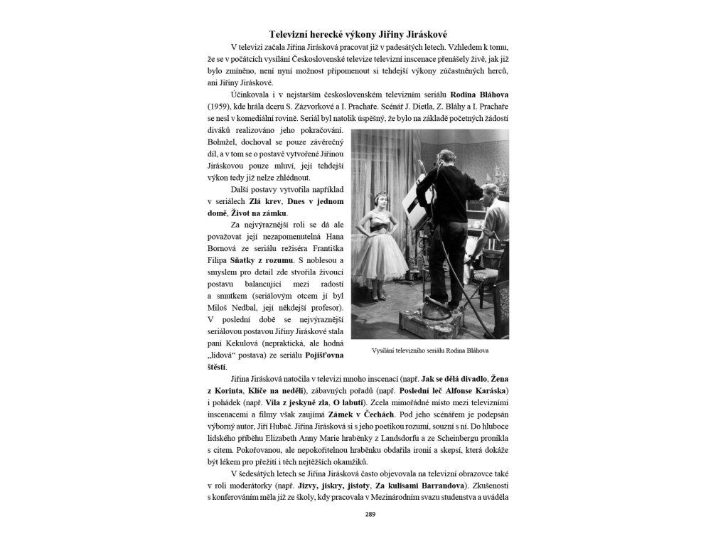 Kniha Jiřina Jirásková – Hvězdou z vlastní vůle se detailně věnuje celému životu této významné české herečky. V souvislostech a logických rámcích tak může čtenář pohlédnout nejen na podrobný přehled a rozbor profesionální dráhy herečky a ředitelky Divadla na Vinohradech, ale rovněž je mu poodhaleno mnoho ze soukromého života Jiřiny Jiráskové (dětství, dospívání, vztahy…). Kniha také přináší unikátní písemnosti ze soukromého archivu Jiřiny Jiráskové. Výjimečnou přílohu tvoří bohatý obrazový materiál, který nabízí pohled na mnoho dosud nezveřejněných fotografií.